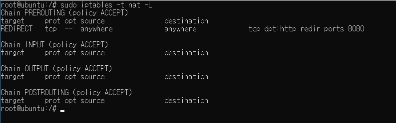 $ sudo iptables -t nat -L
