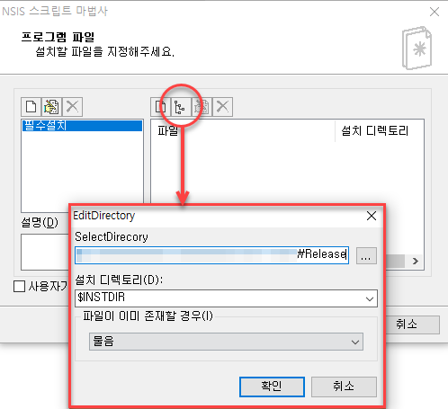 AddDirTree 버튼을 누르고, 설치될 파일이 들어 있는 폴더를 선택해주면,