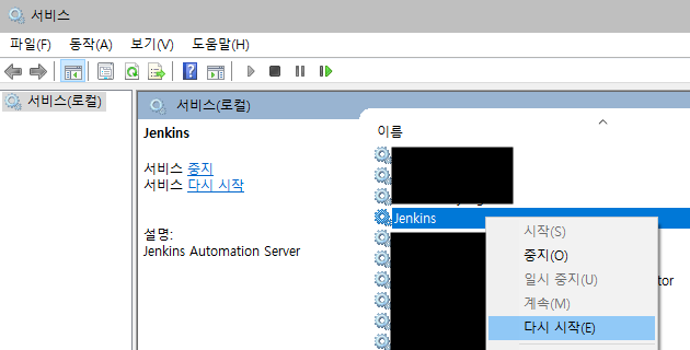 시작-서비스 -Jenkins 재시작