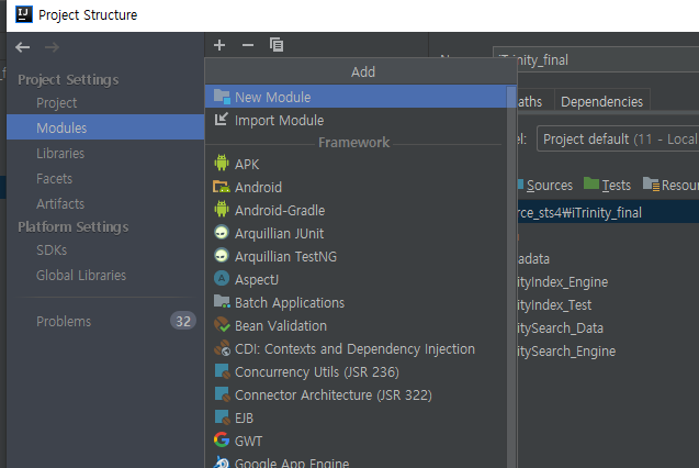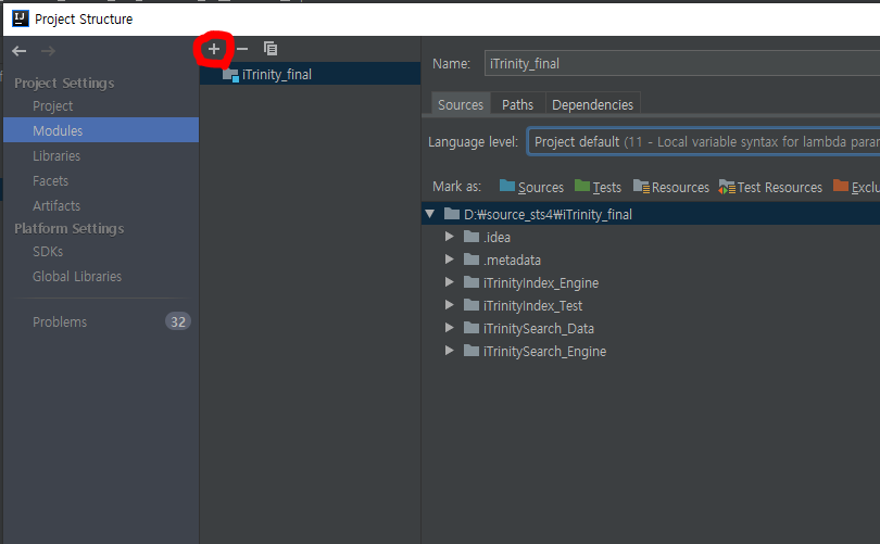 이제 모듈을 추가해보자. 위의 빨간색으로 표시한 + 를 눌러보자