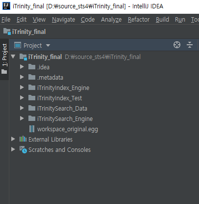 이클립스 개념으로 보자면 iTrinity_final 패키지 밑에 4개의 프로젝트들이 존재하는 것이다.